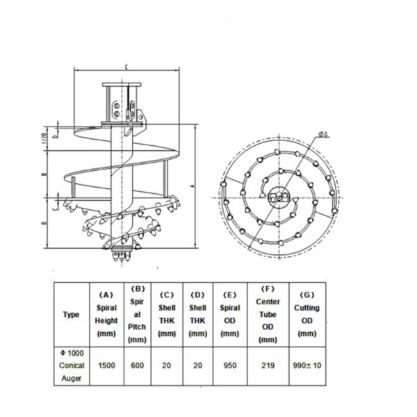 Double Cut Augers are mainly used for bigger diameter uncased boreholes and secant piles.3- Double Cut Auger without rock pilot are recommended for fractured rock or moderately weak to moderately strong rock (5~50 MPa)